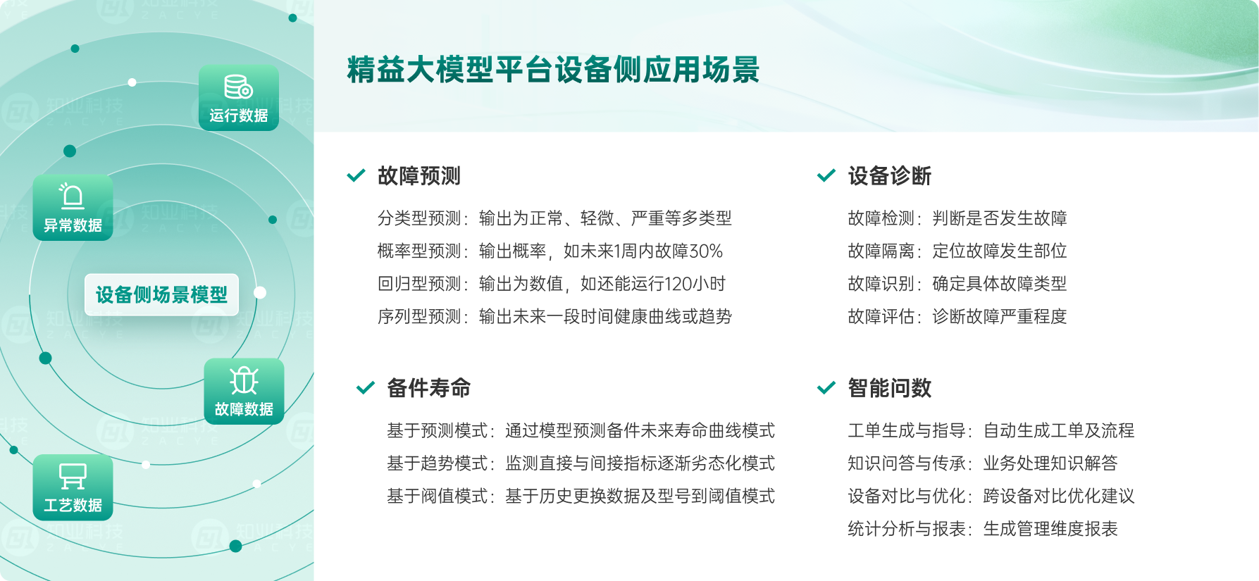 由知业科技打造的精益大模型平台(简称:LPAI),利用现有设备物联OT+IT的数据为基础,LPAI的核心在于通过算法和数据训练,创建了各类数据模型,使其能够理解、推理、预测和决策。帮助企业在设备预测性养护、品质持续改善、工艺持续优化提供智能化服务,减少设备非计划性停机、提升产品良率、减少生产准备时间等。前期试点行业定位:半导体封装、电子信息、机加行业、注塑行业,未来将持续推进其他相关行业。